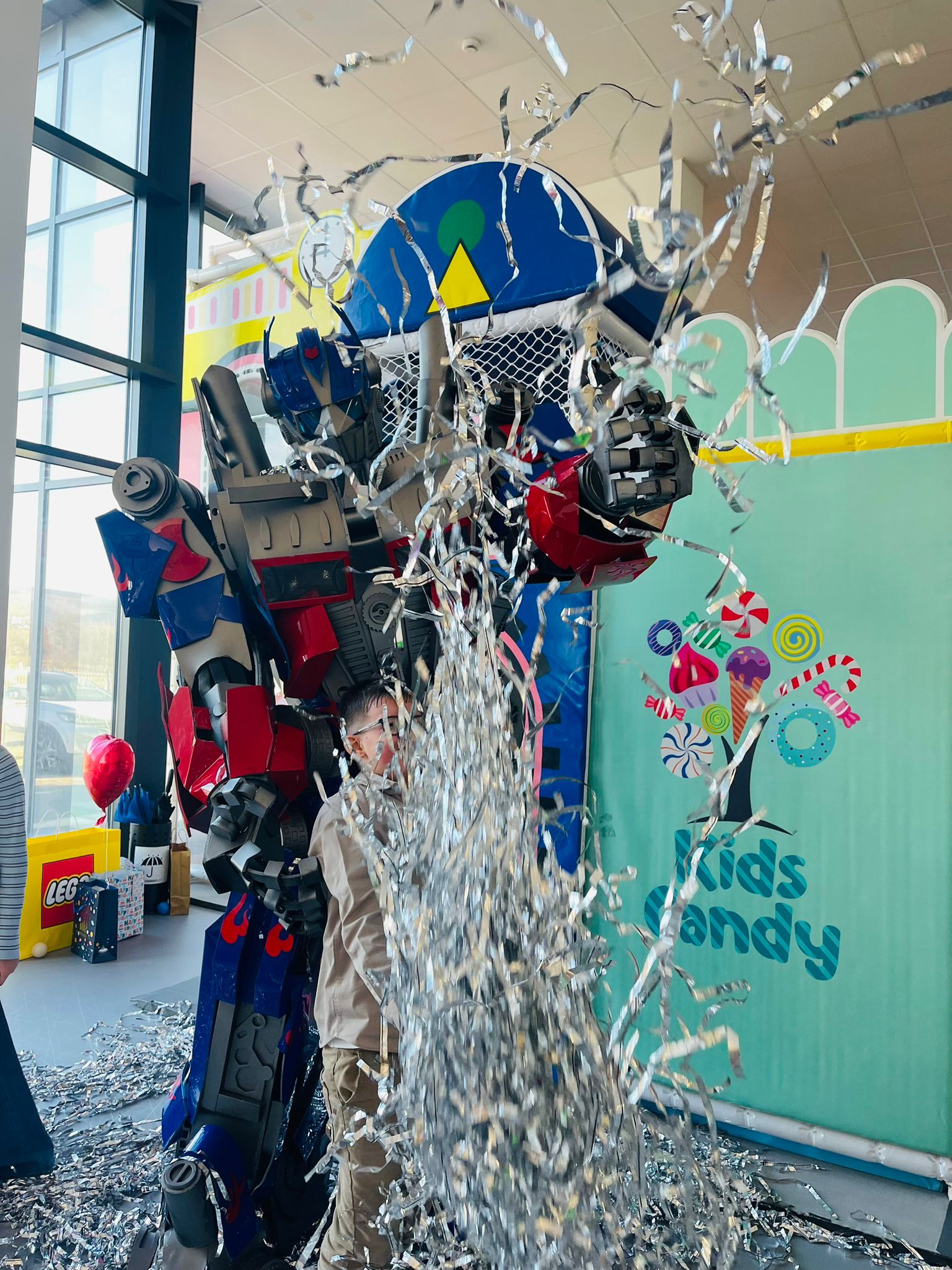Inclus : confeti silver, robot 3 Metri Bumblebee sau Oprimus Prime